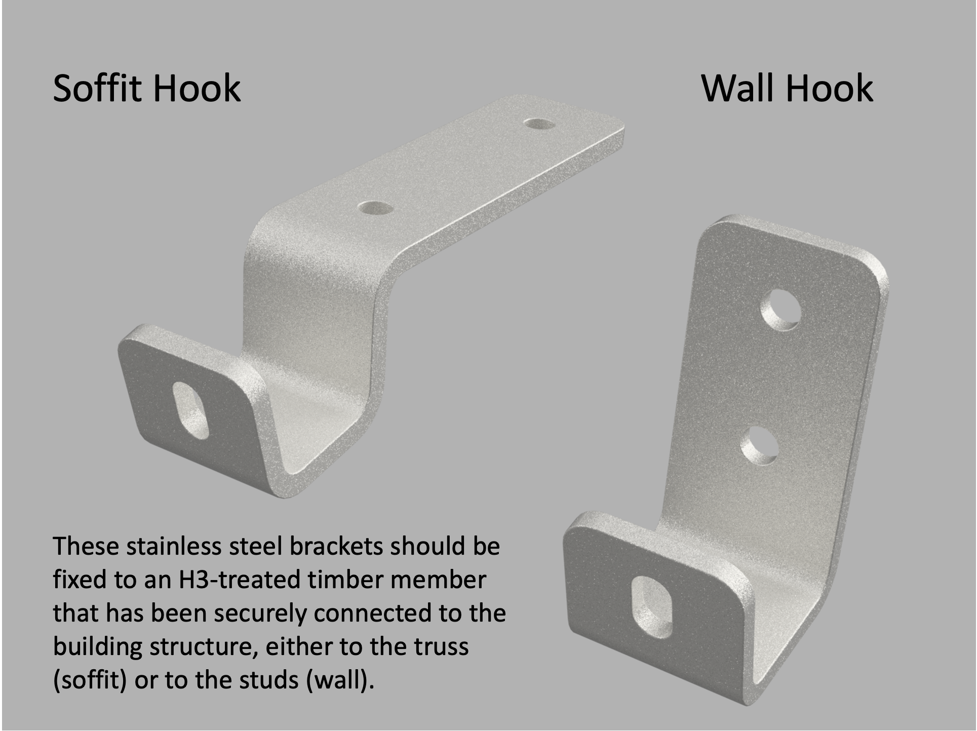 Each frame mounts effortlessly to Kermit’s telescopic posts (sold separately), or connects to your house or timber posts with precision laser-cut stainless steel fittings.