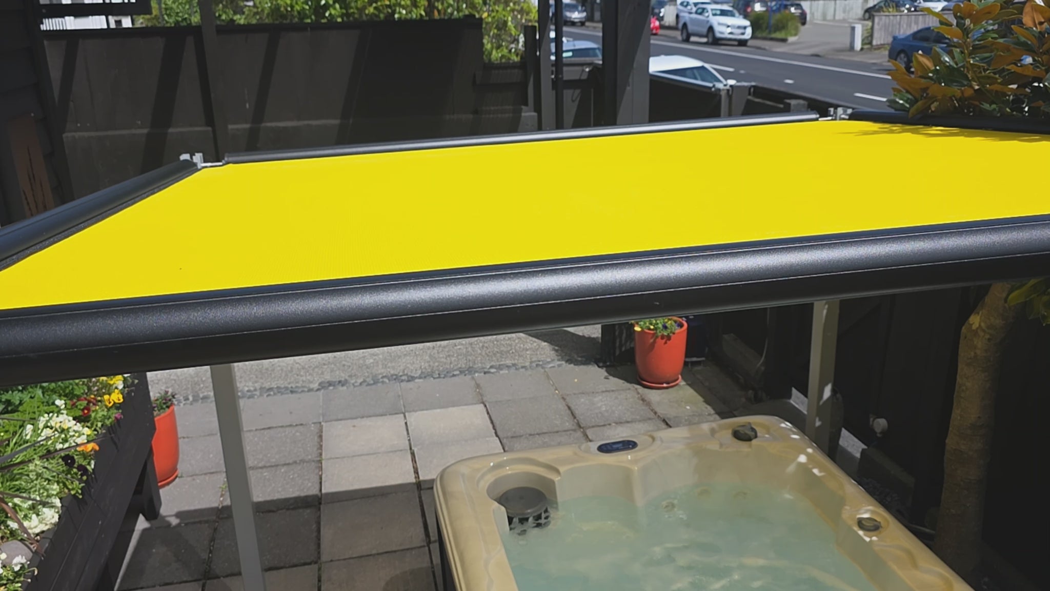 💧 With just a 5° fall, water sheds off neatly. Telescopic posts let you fine-tune fall and height — lower for summer shade, lift for winter sun. You’re in control.