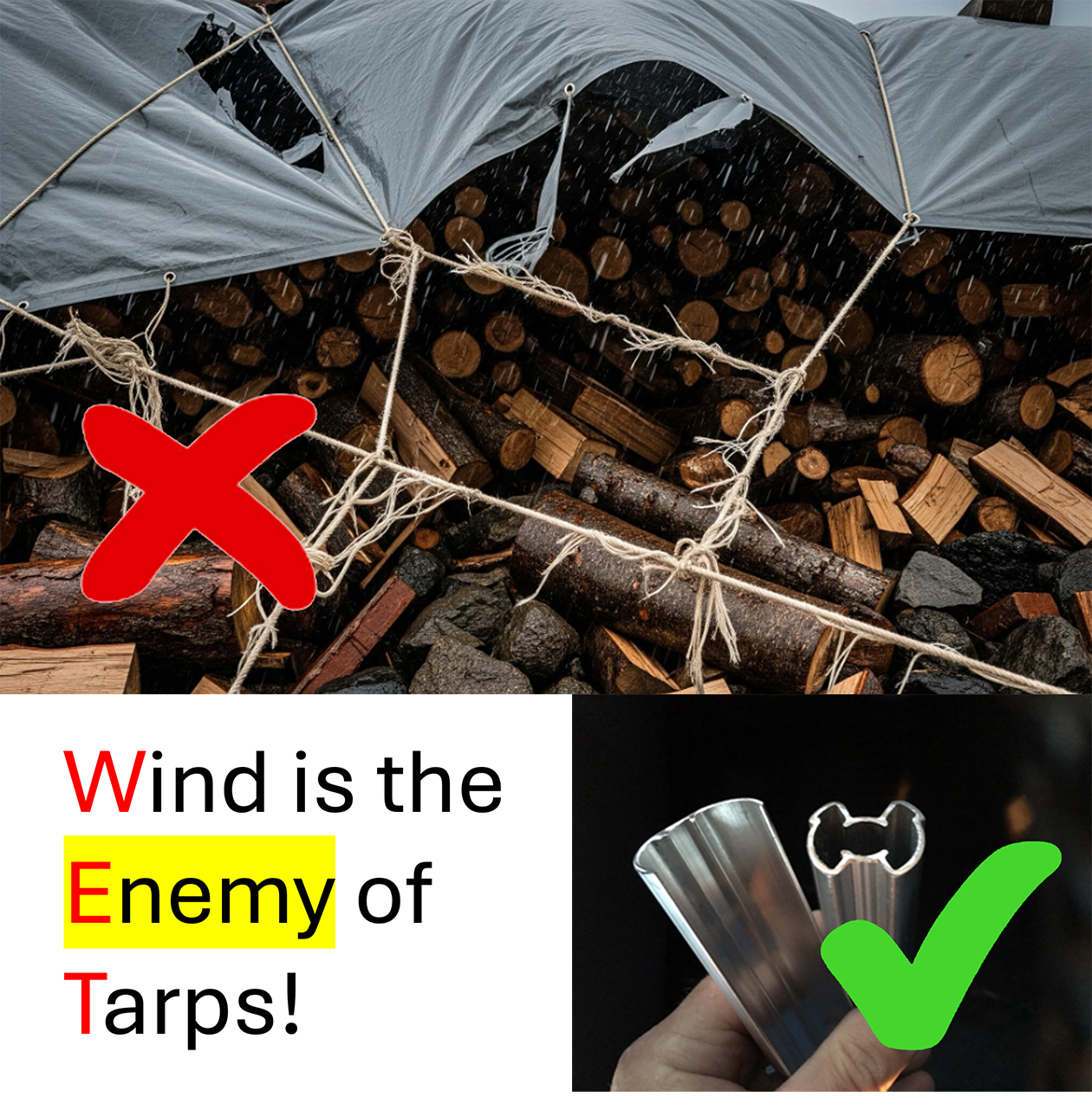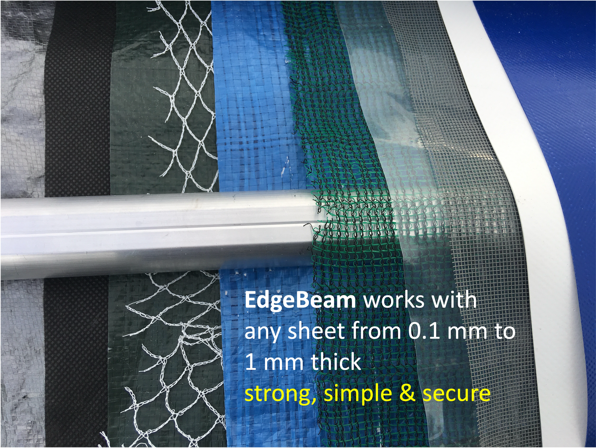 EdgeBeam makes tarpaulins work better — clips on in seconds, lasts for decades.